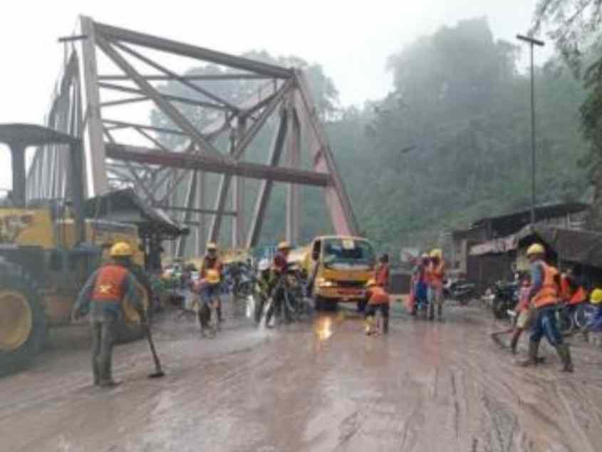 Pembersihan dilakukan untuk memastikan struktur jembatan bebas dari material abu vulkanik serta mengurangi risiko tergelincir bagi pengguna jalan.