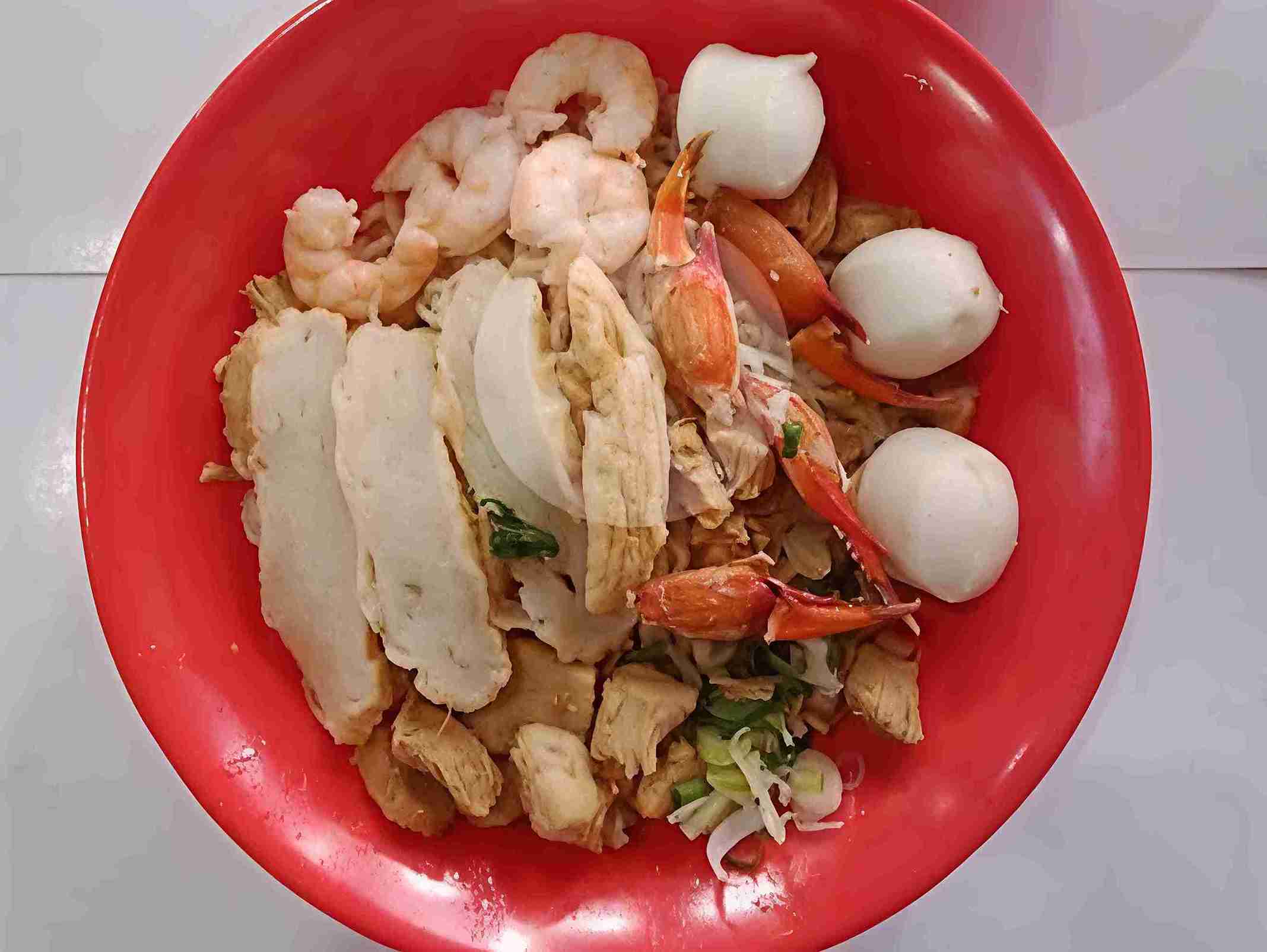 Selain daging kepiting, semangkuk mie ini biasanya disempurnakan dengan kehadiran topping pendukung seperti bakso ikan yang kenyal, udang kupas, dan kekian (olahan udang dan tepung). Kombinasi “hasil laut” dalam satu mangkuk ini menciptakan simfoni rasa gurih yang kaya, atau yang sering disebut sebagai umami alami.