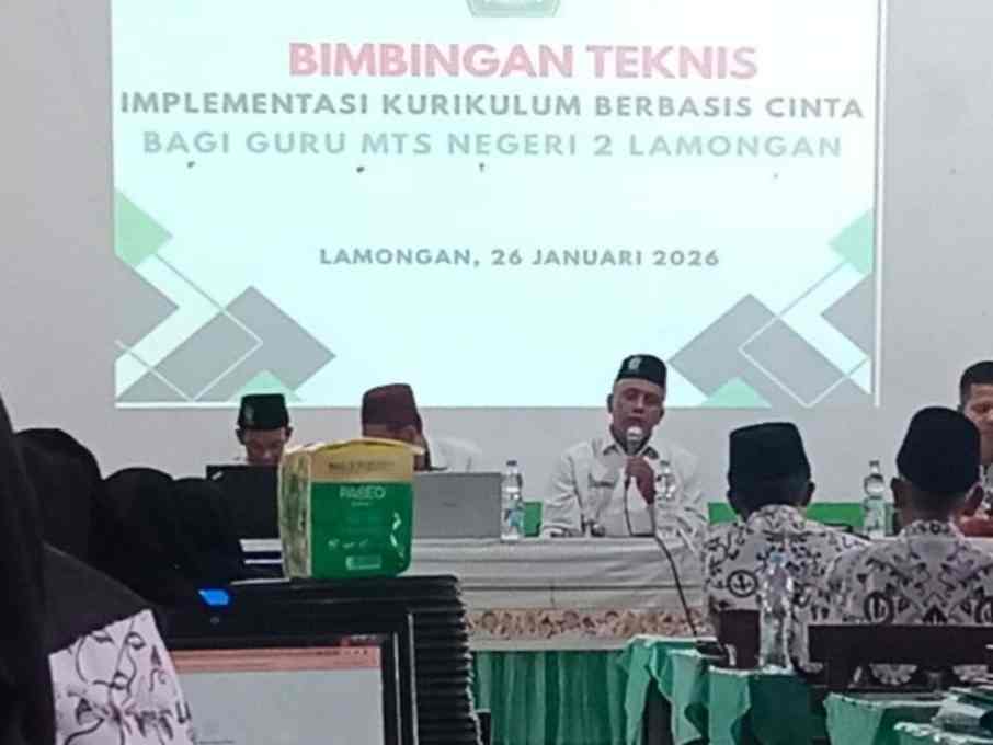 Sementara itu, Kepala MTsN 2 Lamongan, Asman, S.Ag., M.Pd., menyampaikan apresiasi atas terselenggaranya Bimtek tersebut. Ia berharap nilai-nilai dalam Kurikulum Berbasis Cinta tidak hanya berhenti pada tataran konsep, tetapi benar-benar terimplementasi dalam keseharian guru saat berinteraksi dengan peserta didik.